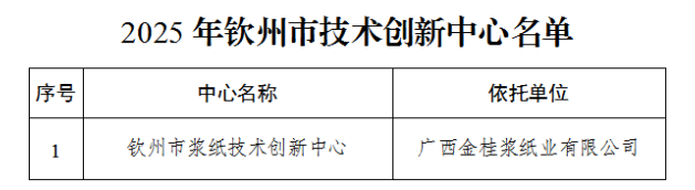 近日,钦州市科学技术局正式公布2025年钦州市技术创新中心名单,广西金桂浆纸业有限公司成功入选,这是金桂浆纸在技术创新领域的又一重要里程碑,彰显了该公司在制浆造纸行业的领先地位和持续创新能力。