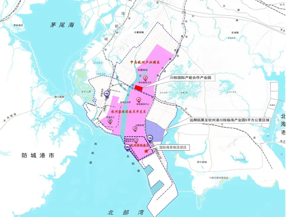 根据《西部陆海新通道总体规划》部署,加强西部地区基础设施建设,按照高水平共建“一带一路”的要求,发挥北部湾港的区位优势,提升与东盟国家互联互通水平,北部湾港(钦州港)将建设成为国际门户港。川桂两地达成合作,共建川桂国际产能合作产业园,积极响应建设西部陆海新通道的战略决策。
