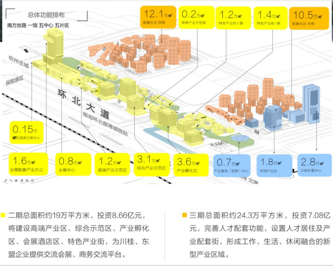 同时,整个园区还将吸引金融、电子商务、培训教育机构、中介咨询机构、法律事务、商业办公、文化双向交流、饮食文化等现代服务业企业进驻,打造面向中西部、东盟乃至欧亚地区的综合贸易服务平台、供应链综合服务平台、高新技术先导孵化平台、中国一东盟信息服务平台及文化交流服务平台。