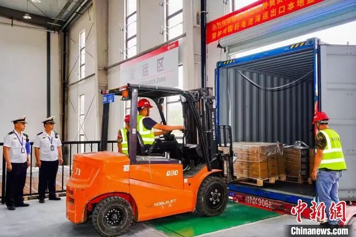 海运是锂电池国际运输的主要方式,为解决锂电池出口的“二次装箱”问题,设立首个外贸出口协同查验点——柳州市服务外贸货物出口协同查验中心(柳州国轩),电池在厂区即可完成商检、监装等一系列流程,货物运转到钦州港后,即可直接装船出运。
