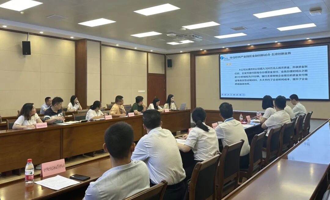 2023年7月,钦州港片区财政金融局向企业解读金融相关政策。