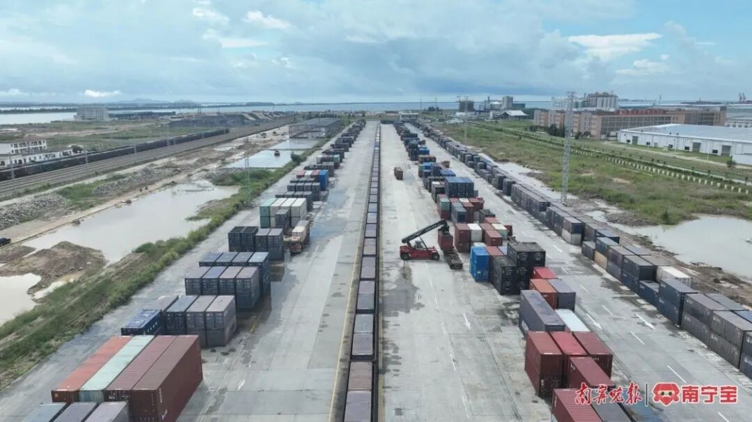 钦州铁路集装箱中心站作业场。