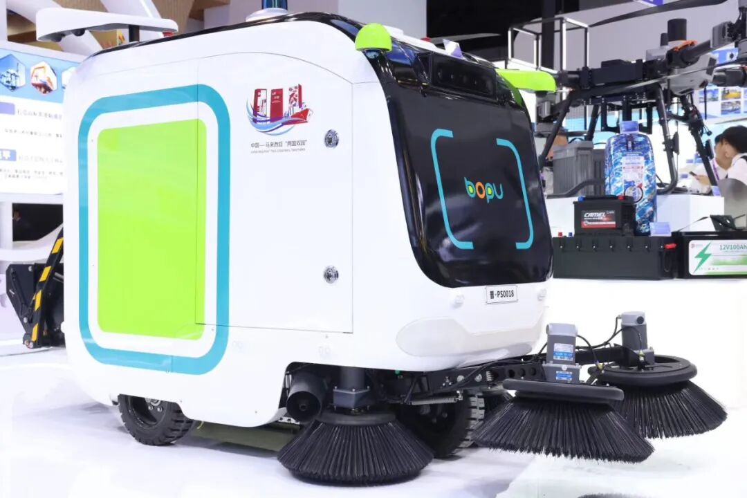 博城环卫机器人在第22届东博会展出。