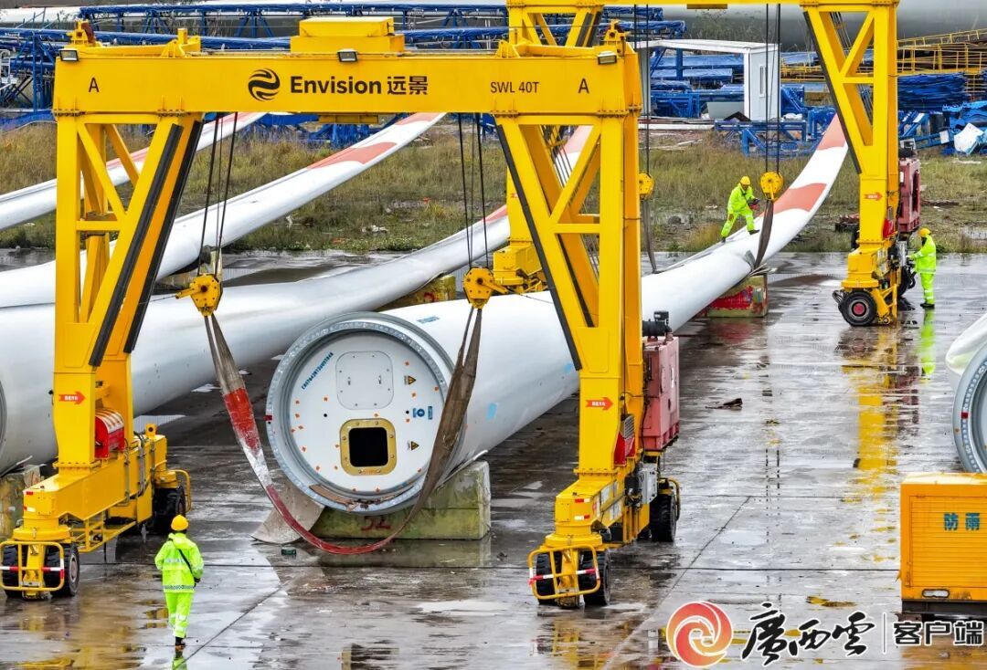 3月24日,在中马钦州产业园区装备制造产业园远景钦州智能风机叶片制造现场,工人们在紧张有序地生产风电叶片。该基地年产300支海上风机叶片,满足蓬勃发展的全球海上风电市场。