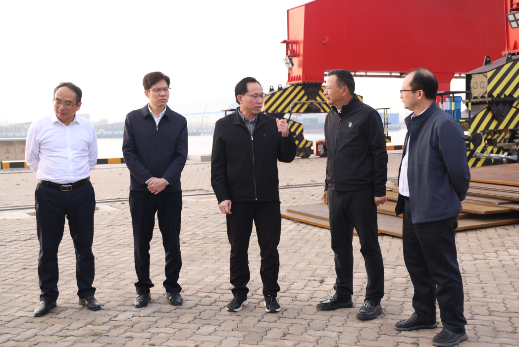 毛任建(左三)在钦州锦峰海洋重工科技有限公司现场调研。