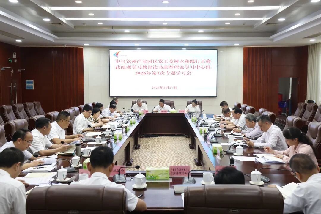 3月27日,中马钦州产业园区党工委开展树立和践行正确政绩观学习教育读书班暨理论学习中心组2026年第1次专题学习会,深入学习贯彻习近平总书记关于树立和践行正确政绩观的重要论述,聚焦“立党为公、为民造福、科学决策、真抓实干”主题,进一步增强树立和践行正确政绩观的政治自觉、思想自觉、行动自觉,持之以恒推进全面从严治党,为实现“十五五”良好开局提供坚强保障。园区党工委副书记、管委会常务副主任毛任建主持会议并讲话。