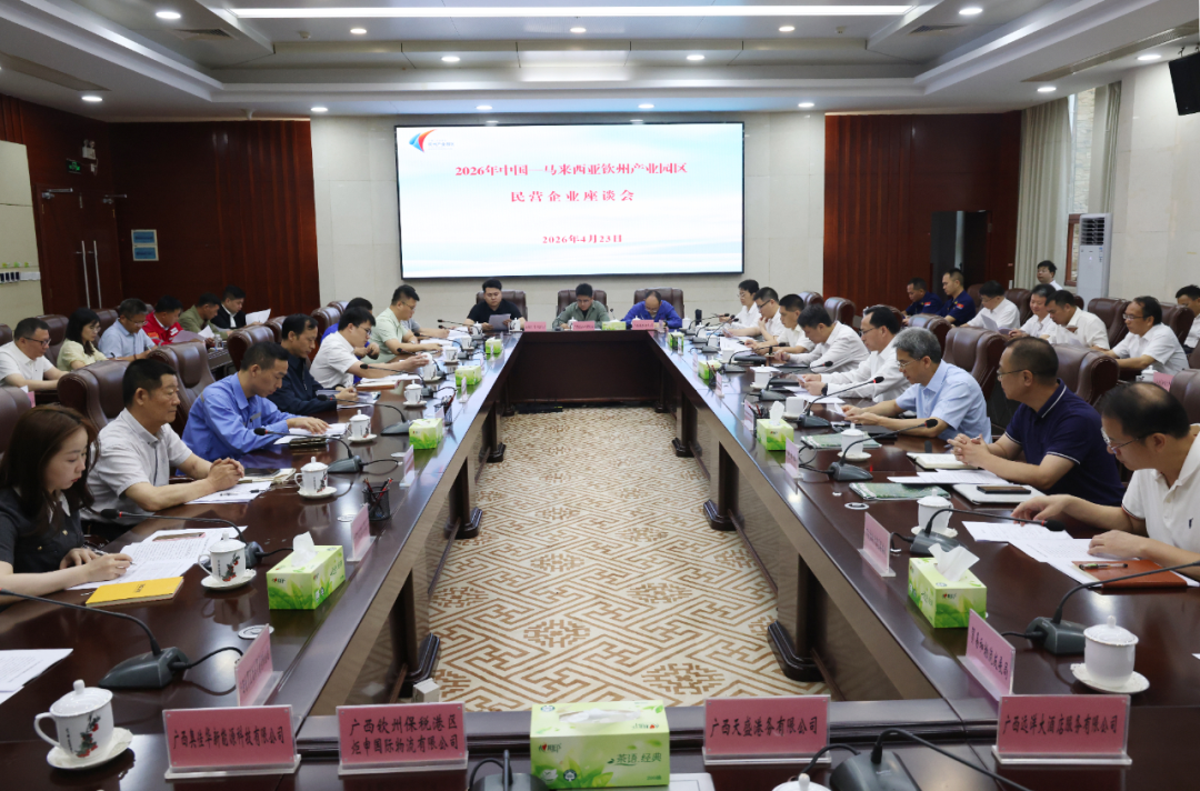 4月23日,中马钦州产业园区管委会召开民营企业座谈会,贯彻落实习近平总书记在民营企业座谈会上的重要讲话精神,深入了解园区民营企业的发展现状、面临的困难和问题,听取民营企业对园区营商环境、政策支持等方面的意见和建议,推动园区民营经济高质量发展。中马钦州产业园区党工委副书记、管委会常务副主任毛任建出席座谈并讲话。